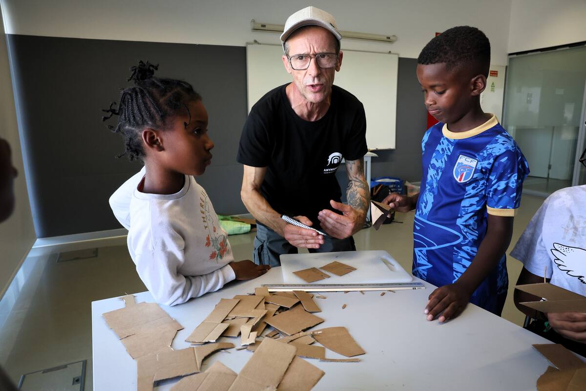 A partir daqui, os participantes têm a oportunidade de realmente colocar em prática e experimentar o sonho de desenvolver processos para criar pequenas marionetas que são robôs de cartão.